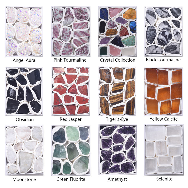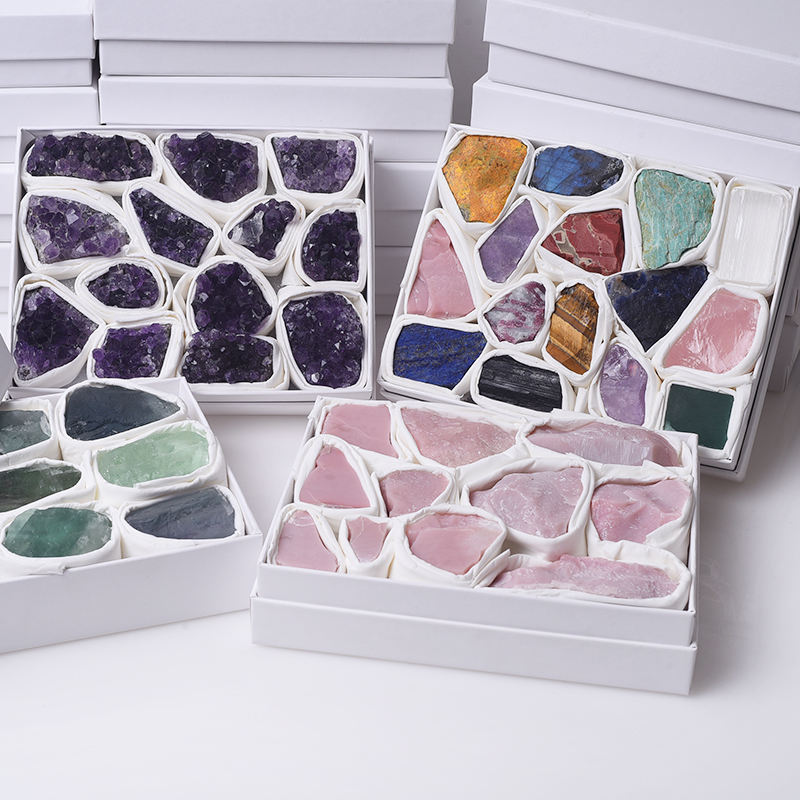 Divers de Cristaux Quartz Bloc Naturel Améthyste Rose quartz Reiki Guérison Spécimens Minéraux Pierres avec boîte