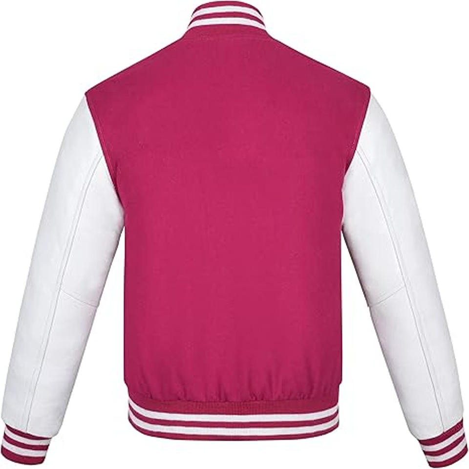 Veste universitaire personnalisée en laine rouge et manches en cuir blanc, vestes de baseball de type letterman