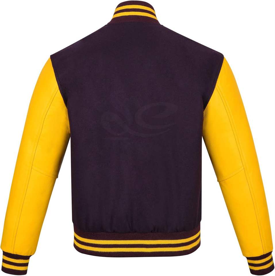 Veste universitaire d'hiver pour homme, sur mesure, vintage, noire, bordeaux, en laine avec manches en cuir de vachette doré et logo frontal