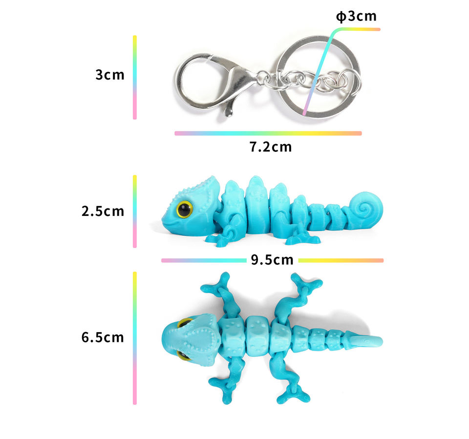 Vashine 3D personnalisé OEM imprimé coloré PLA porte-clés enfants figurines d'action Joint jouets mobiles mignon amical dessin animé caméléon