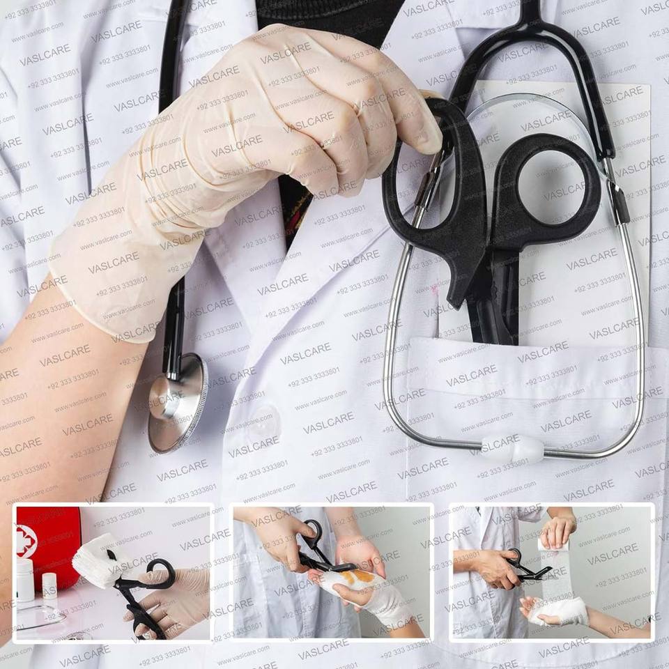 Specification:Blunt tips, ABS Material Handle, Sharp Cutting Edge and Serrated Blades, Stainless steel, Trauma Shears, cutting Bandage Scissors, Emergency First Aid Scissors
