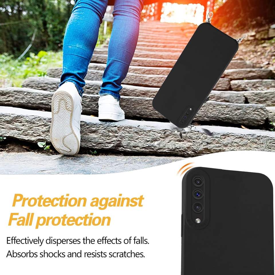 Vauki for for A50/A50s/A30s Silicone Cord Case with Adjustable Neck Strap & Shoulder Strap Plain Design Black