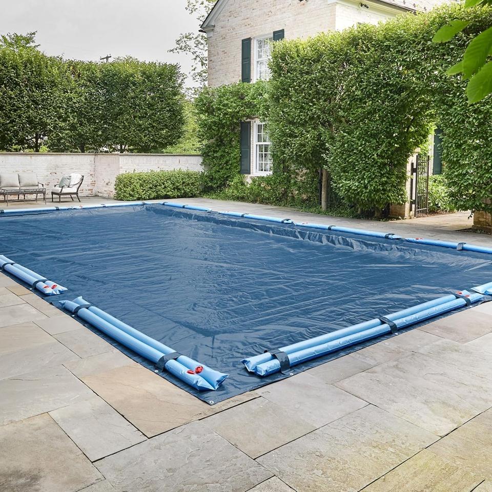 Bâche de piscine industrielle en tissu PE/PVC imperméable, personnalisable avec logo couleur, pour hiver et sécurité, modèle Vectus