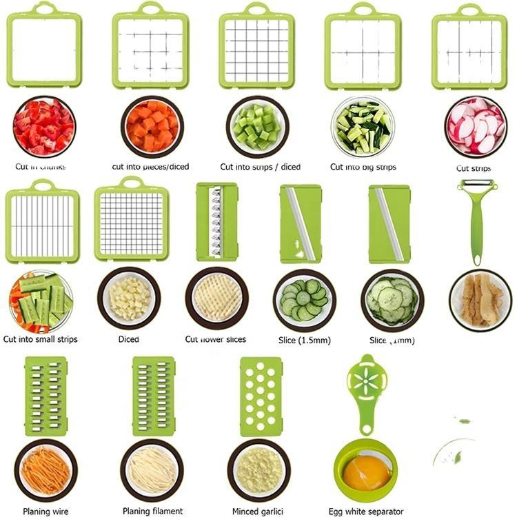 Hachoir à légumes, hachoir à oignons, trancheuse à mandoline, hachoir à aliments professionnel 22 en 1 coupe-légumes amélioré avec récipient