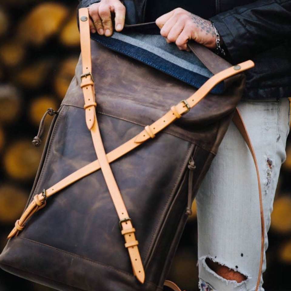 Mots-clés:Sac à dos à enroulement en cuir véritable