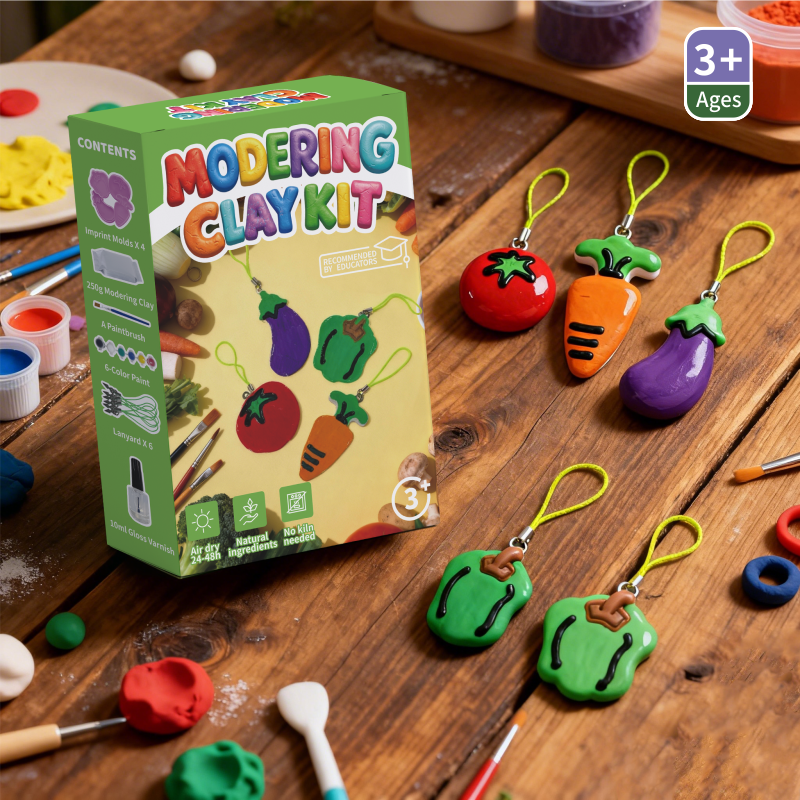 Kit de pâte à modeler à l'air libre sur le thème des légumes pour enfants, pour la création de pendentifs et porte-clés, non toxique, sans cuisson, sûr, cadeau artisanal éducatif pour enfants