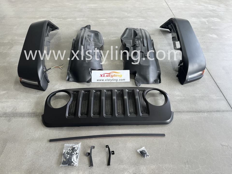 Pièces automobiles de véhicule accessoires externes de voiture ancien à nouveau kit de carrosserie pour Jeep Wrangler JK à JL style fender flare et calandre