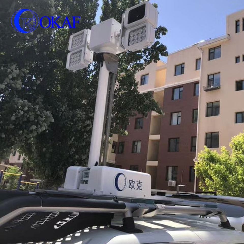 Mât télescopique pliable monté sur véhicule, améliorant la visibilité pour les patrouilles mobiles et la sécurité d'urgence