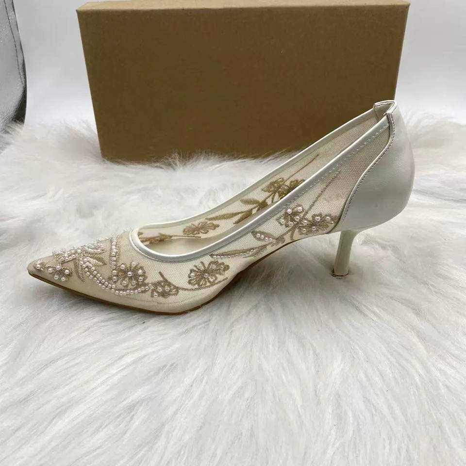 Sandales à talons mi-hauts ornées de voiles et de strass pour femmes, élégantes escarpins de qualité style célébrité