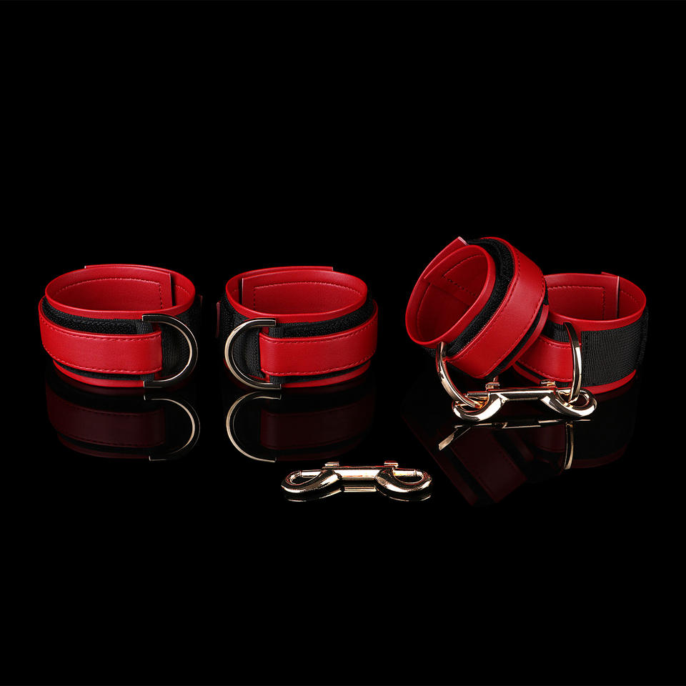 Attaches de cheville et de poignet en velcro avec sangles de fixation à cinq points et connecteurs à clip en cuir pour jeux de bondage BDSM