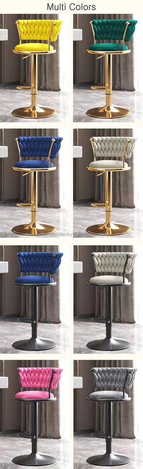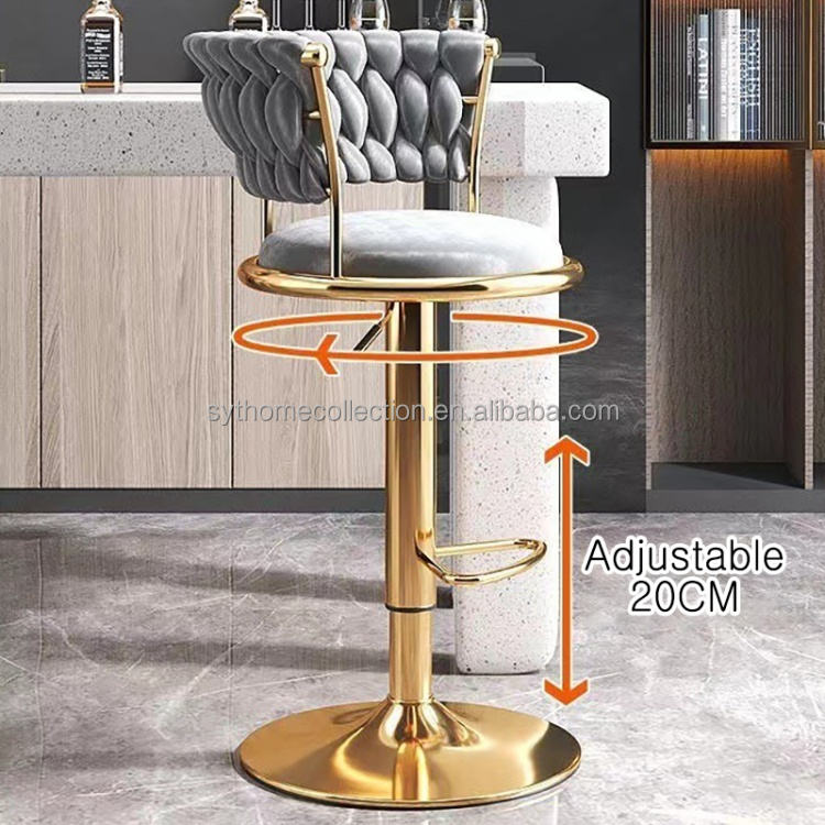 Tabourets de bar en velours 360 Rotation Dossier haut Rembourré Moderne Salle à manger de luxe Chaises de bar en plein air Base en fer léger
