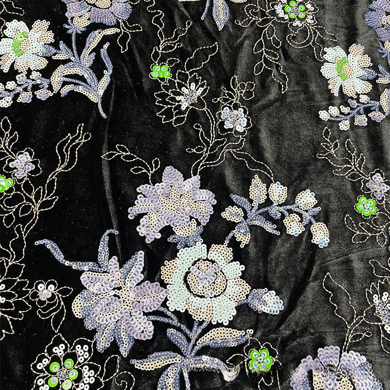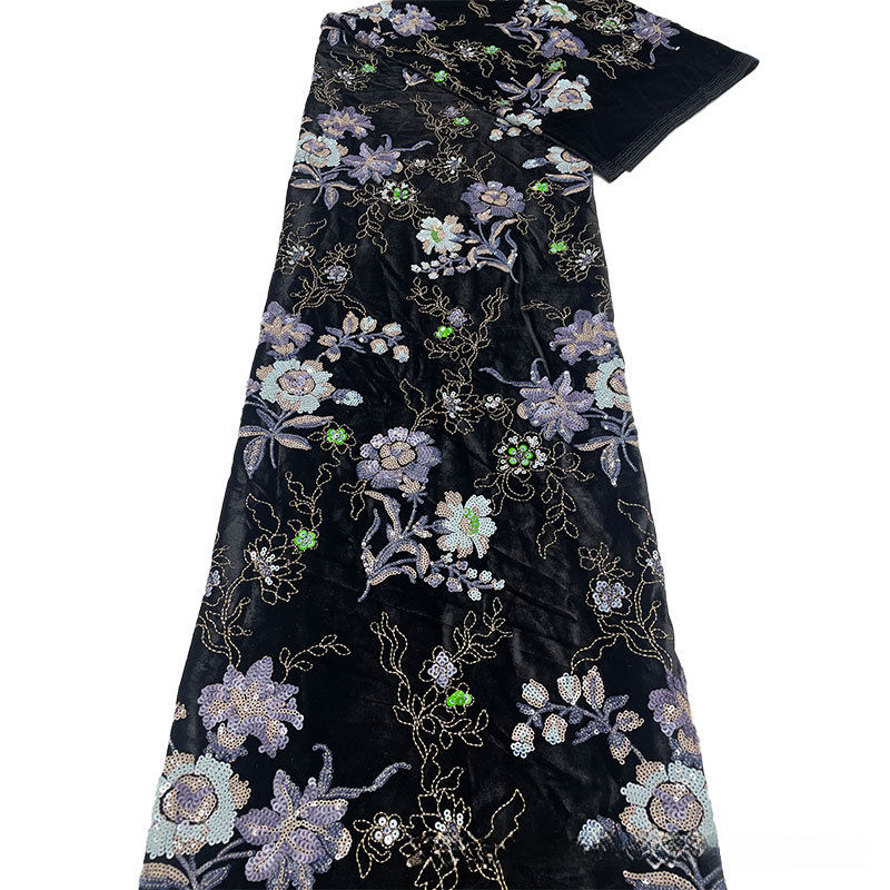 Tissu de broderie perlée à base de velours Tissu de dentelle de gilet Cheongsam de style chinois multicolores