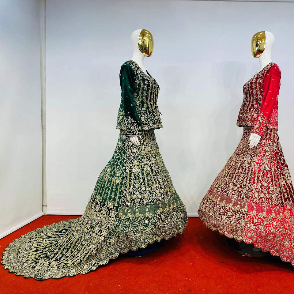 Ensemble Lehenga Choli en velours brodé avec pierres, tenue de mariée pour les mariages et les occasions festives