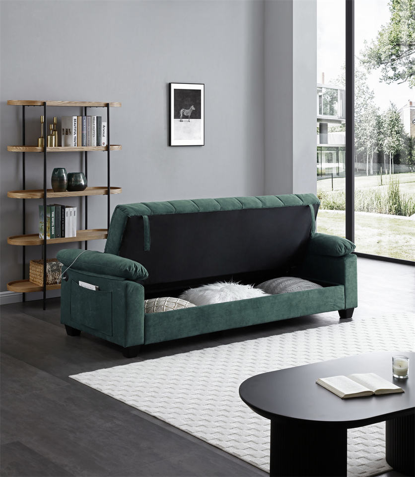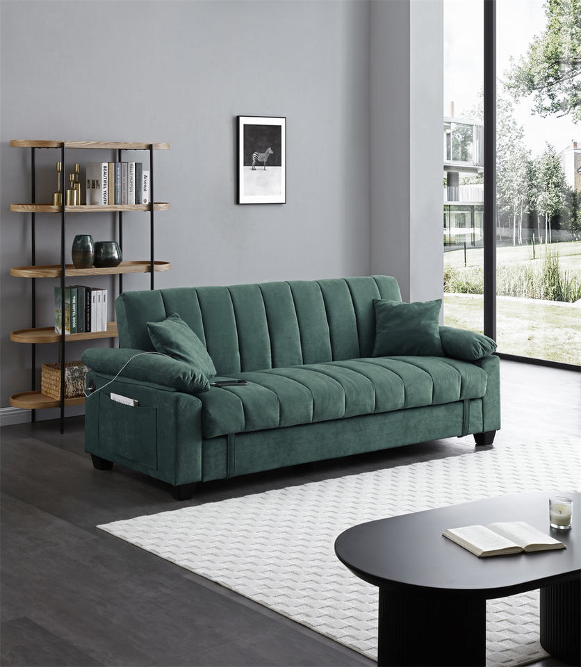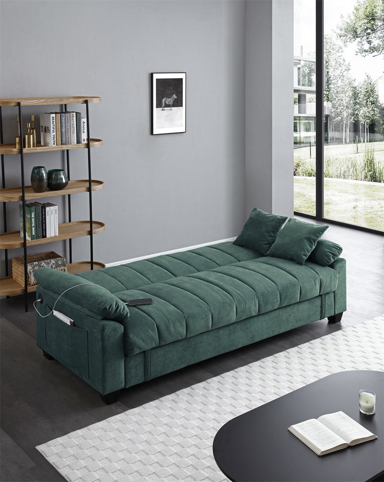 Canapé-lit convertible en tissu velours avec rangement et port de charge USB pour salon, appartement, chambre à coucher, bureau