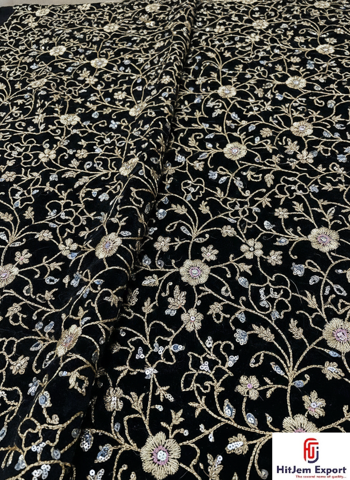 Tissu en velours avec broderie de paillettes pour robes de soirée, robes de cérémonie, tenues de soirée et créations de haute couture Bahreïn