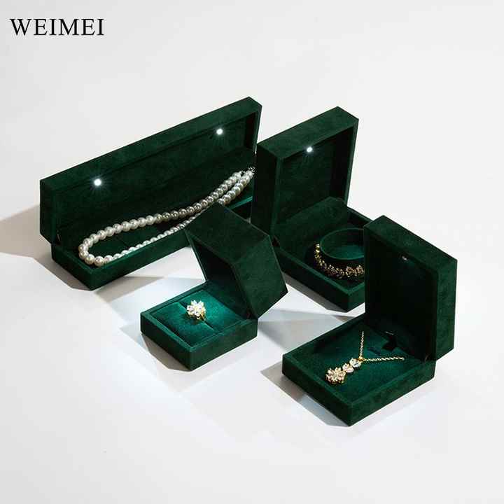 Boîte à bijoux LED en velours avec logo personnalisé Boucles d'oreilles Bague Collier Bracelet Emballage Éclairage