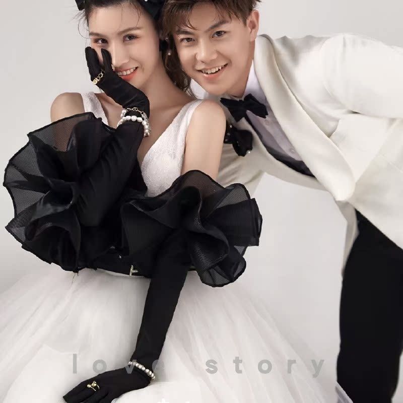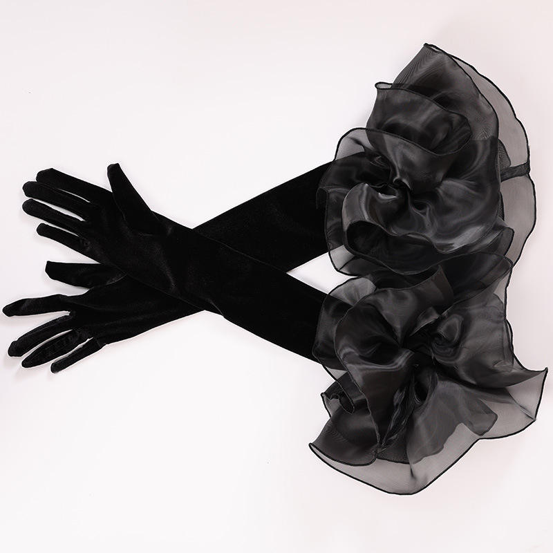 Gants habillés en tulle avec bordure en velours et volants, compatibles avec les écrans tactiles