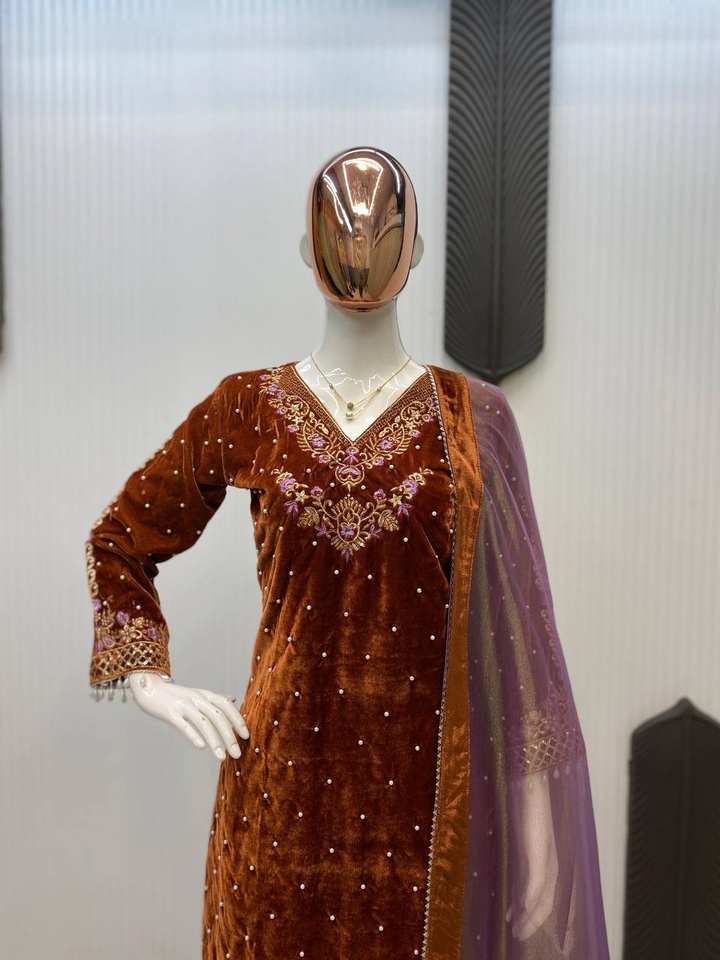 Ensemble complet brodé de sequins et perles en velours avec pantalon en velours et micro-sous-vêtements entièrement cousus, tailles M, L, XL et XXL pour femmes