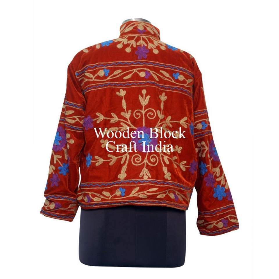 Veste en velours brodée Suzani, faite à la main, motif floral bohème, manteau vintage tribal, vêtement extérieur unique, veste artisanale distinctive