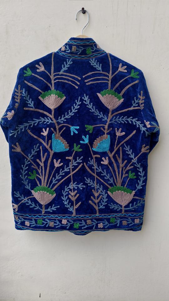 Couverture en polaire Suzani brodée à la main, unie, respirante, écologique, réversible, en coton tissé matelassé pour femme, coupe classique, automne-hiver