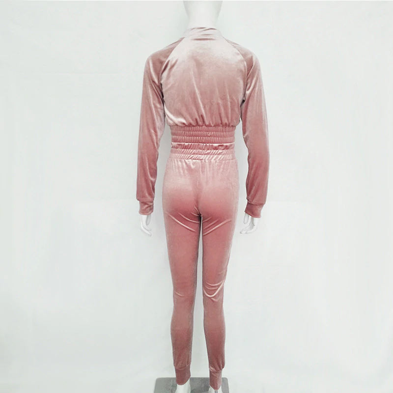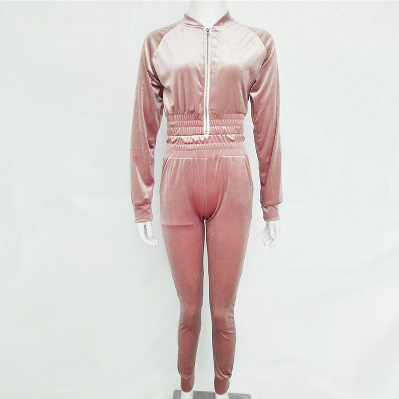 Product name:Velvet Tracksuits Casual Sets Long Sleeve Crop Top Long Pants