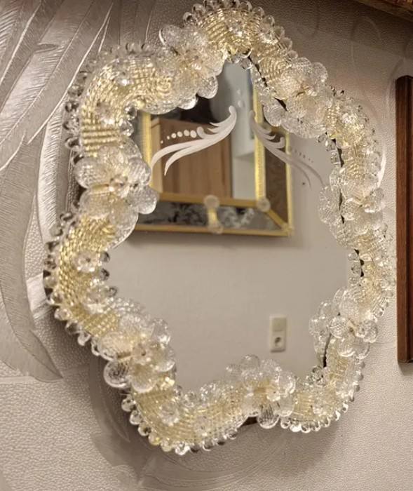 Venetian Murano Mirror Original Murano Glass Floral Frame Vintage Mid Century Floor or Wall Mirror