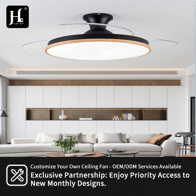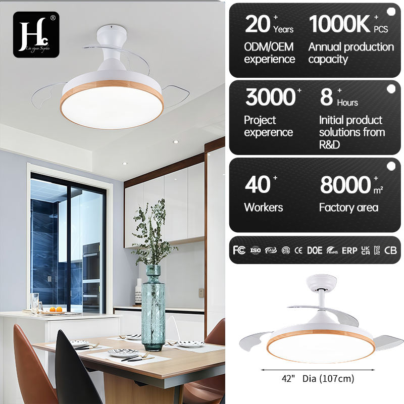 Ventilateurs de plafond LED 42 pouces, ventilateur de plafond rétractable invisible avec lumière et télécommande, ventilateur de plafond moderne