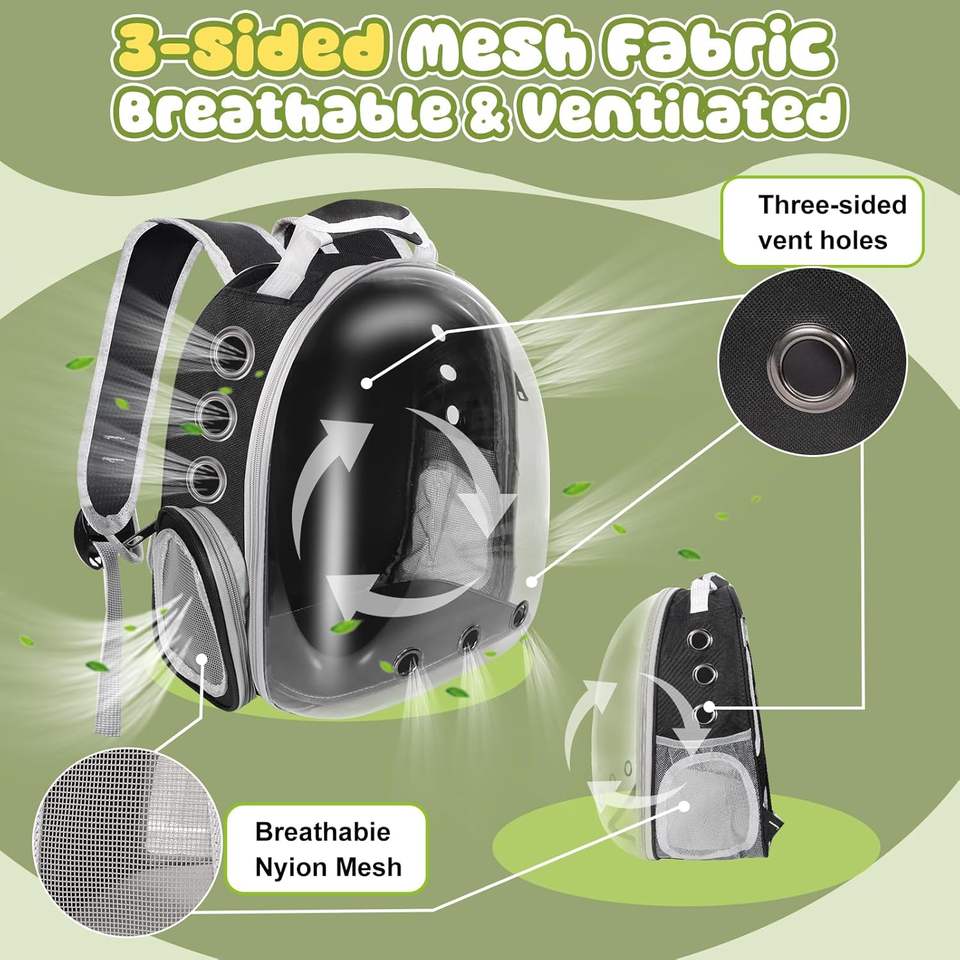 Sac de transport pour chat, oiseau, lapin, cobaye, design de capsule spatiale ventilée, avec fenêtre à bulles transparente, sac à dos de transport pour animaux de compagnie