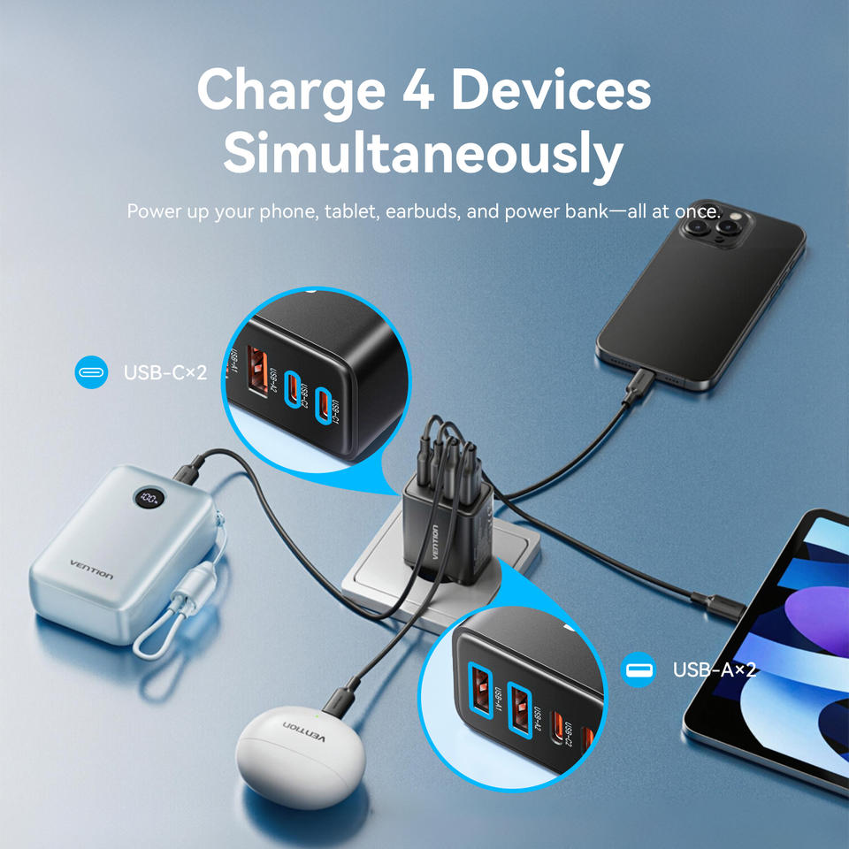 Chargeur GaN Vention 50W, adaptateur de charge rapide type C, prise USB, chargeur type C pour téléphone portable, tablette
