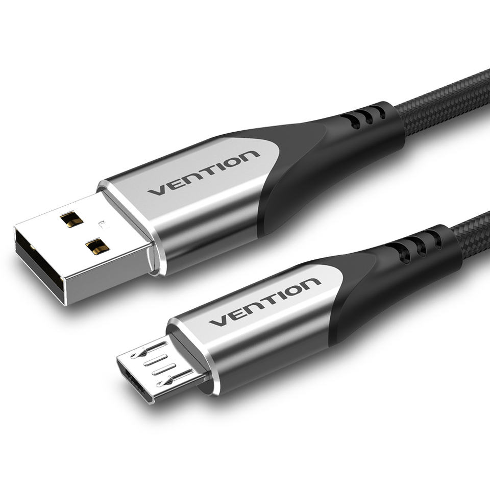 Câble Micro-USB Vention à charge rapide 3A, gaine en aluminium et PVC, blindage tressé, cuivre gris, pour chargeur de téléphone portable et tablette