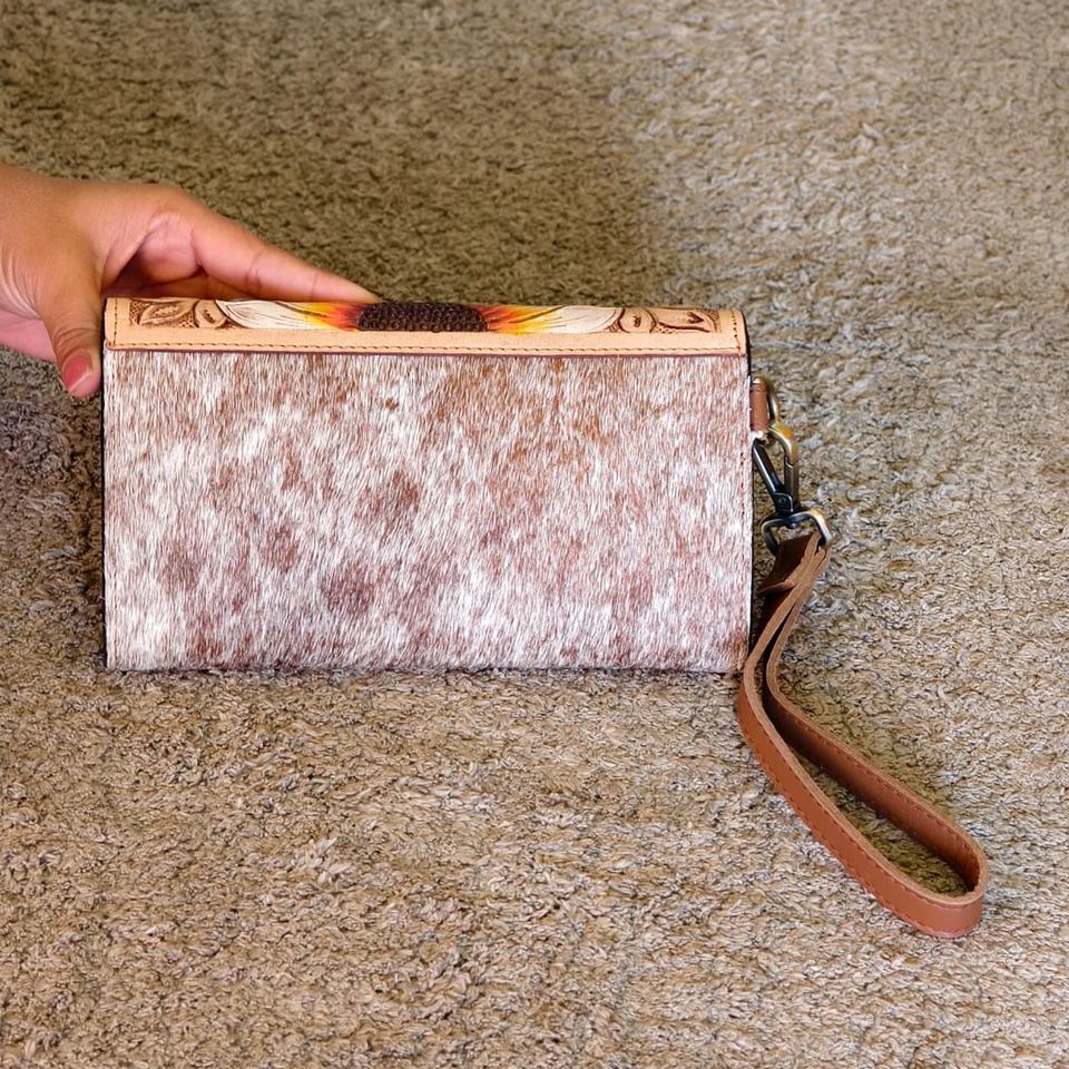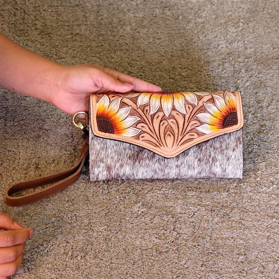 Portefeuille-bracelet en cuir Venus, design de luxe, cuir de vachette sculpté à la main, protection RFID, grande capacité, fermeture à bouton