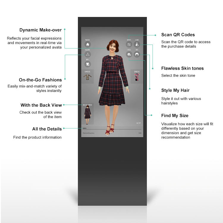 Vercon Interactive Smart Full Length Dressing Miroir de cabine d'essayage virtuel 3D AR avec balance intelligente Spotify Music