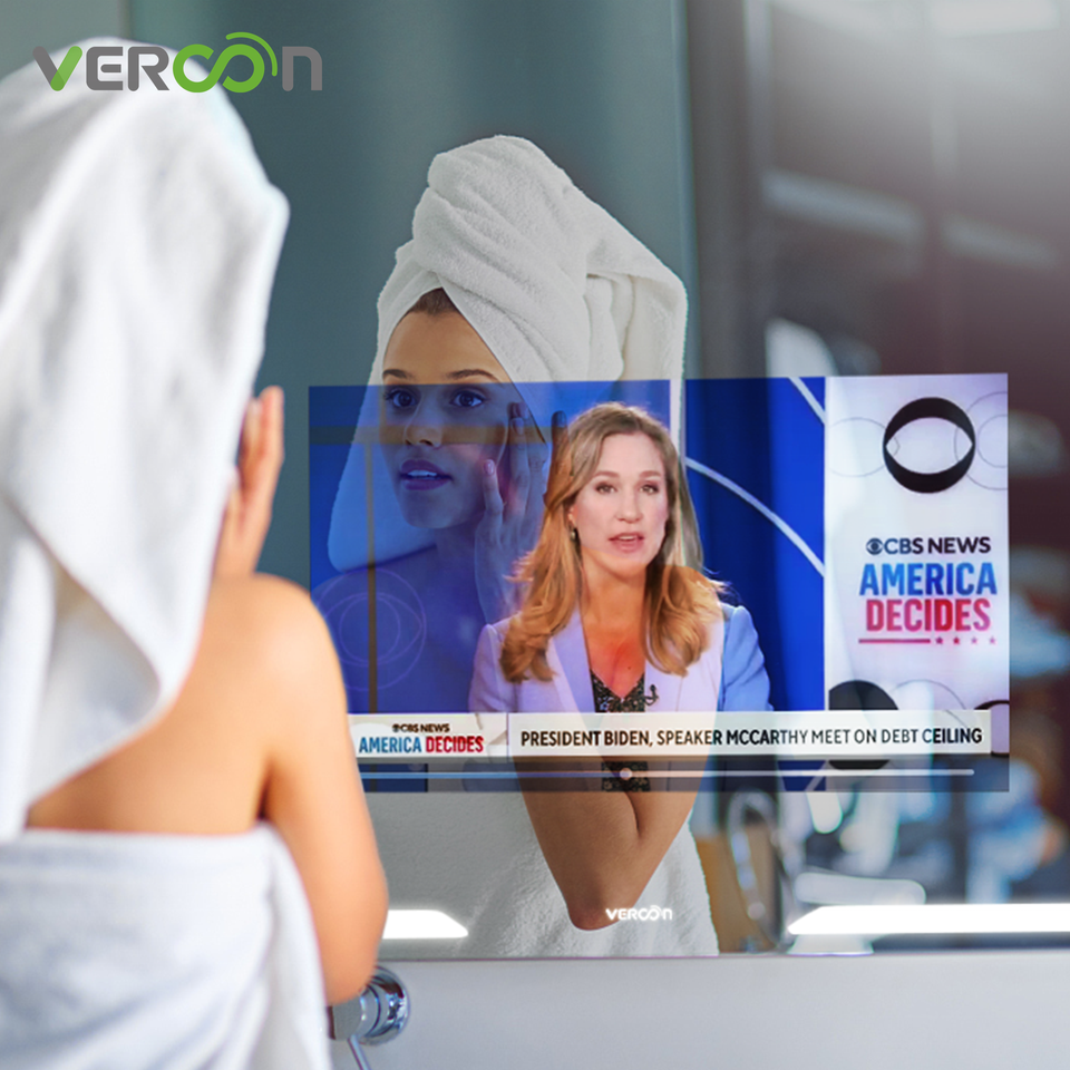 Fabricant Vercon Android Miroir intelligent Hôtel Ascenseur Salle de bain TV Miroir contrôle tactile Affichage vidéo