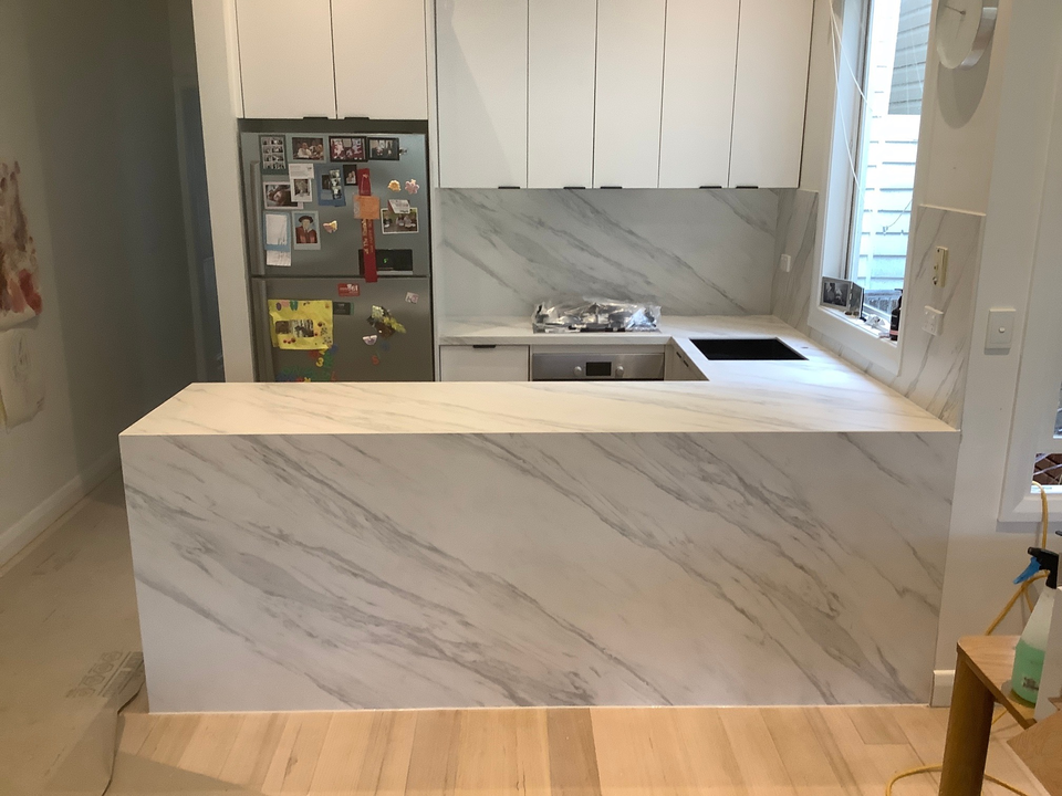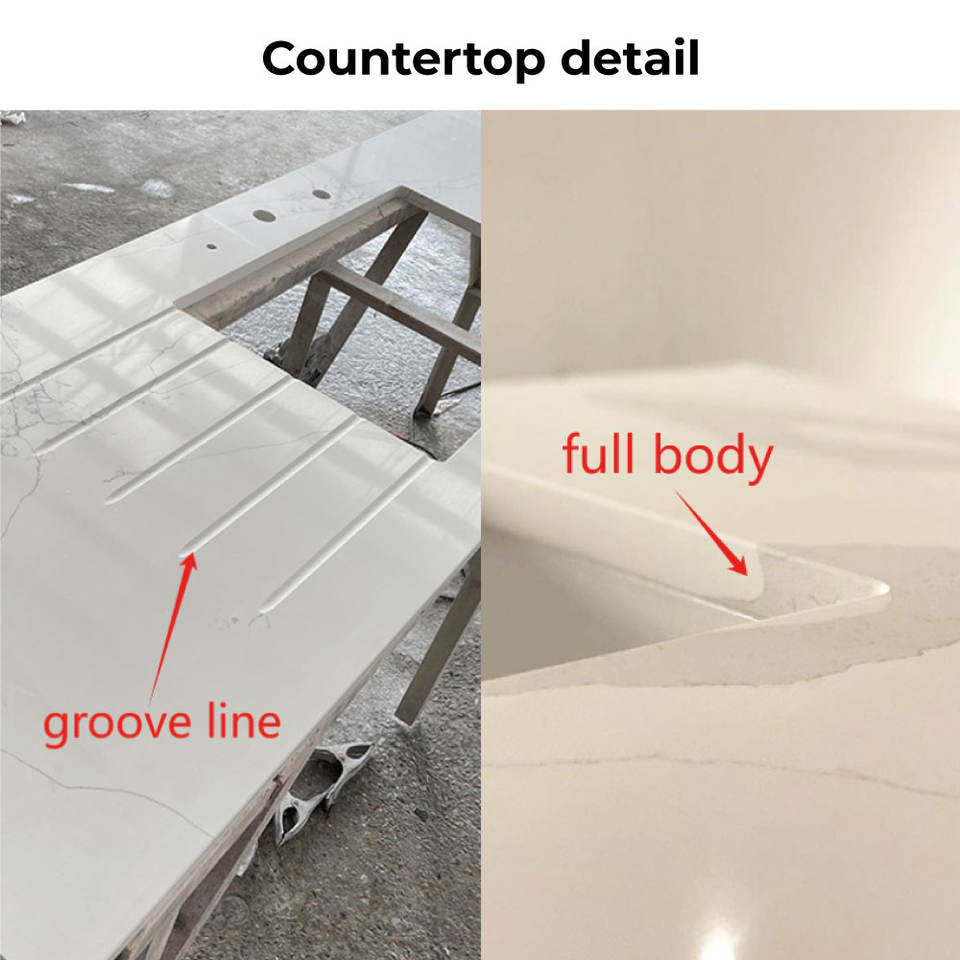 Comptoir de cuisine en quartz Calacata Viola fabriqué sur mesure, comptoirs en quartz d'une seule pièce avec évier, fabriqués en Chine
