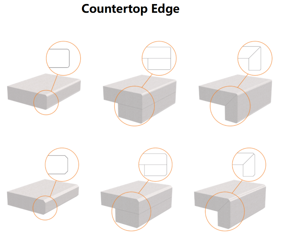 Bordure de partie supérieure du comptoir:Bord plat / arête arrondie