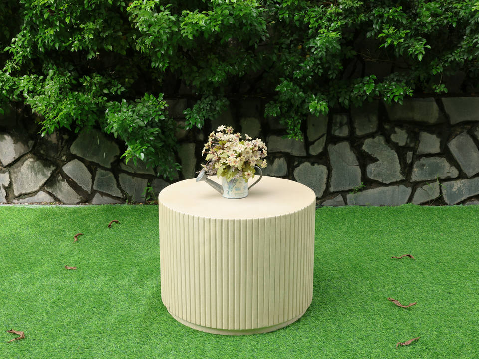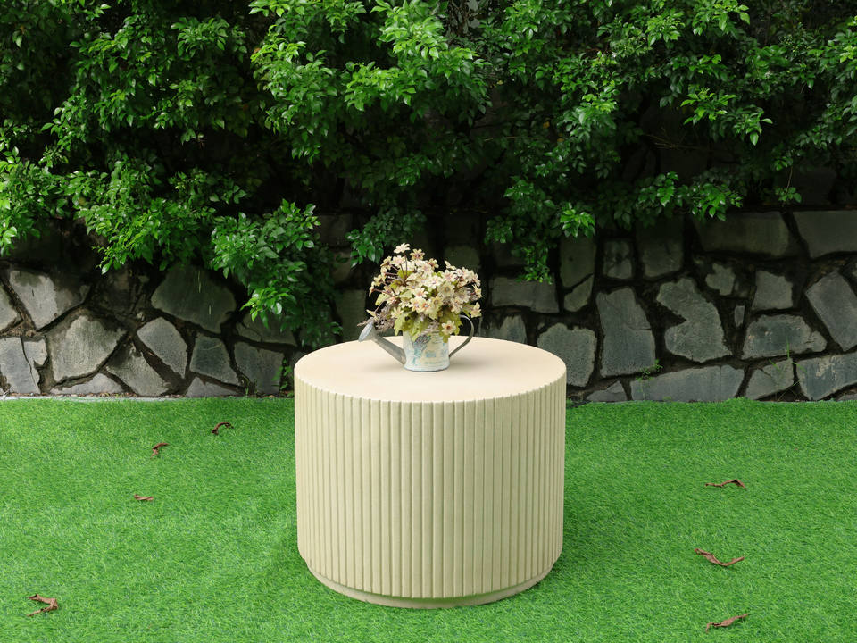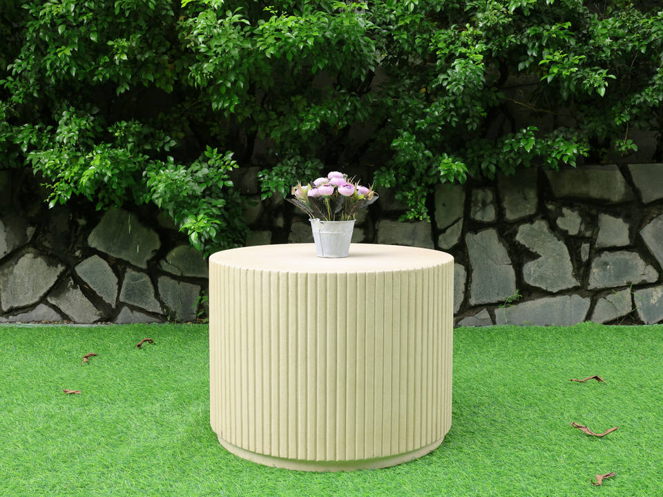 Table ronde en béton design cannelé Verona Mobilier d'extérieur minimaliste et durable pour villa, ferme, jardin, patio et salon