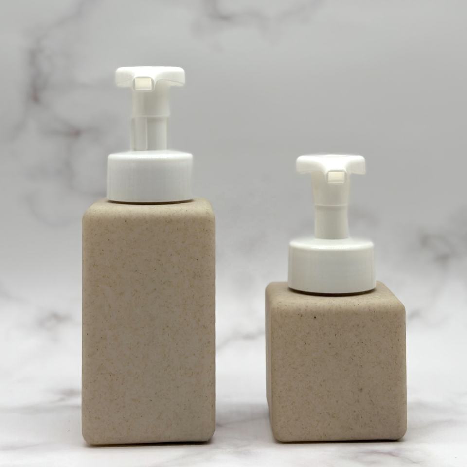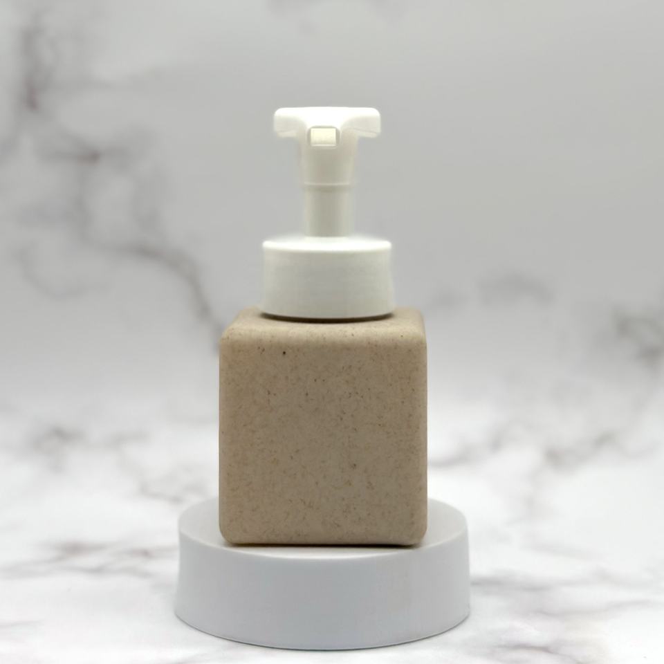 Versailles 250ml Bouteille cosmétique carrée biodégradable en paille de blé avec pompe à mousse et bouchon à vis, kits de voyage essentiels