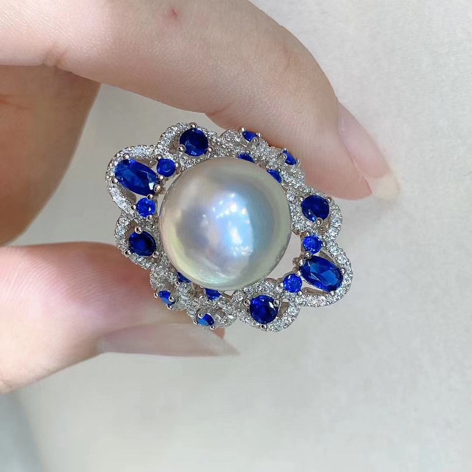Bague en perle naturelle blanche micro-pavée, micro-imparfaite, polyvalente, 13-14 mm, nouveau produit printemps-été - Bagues de mode offertes