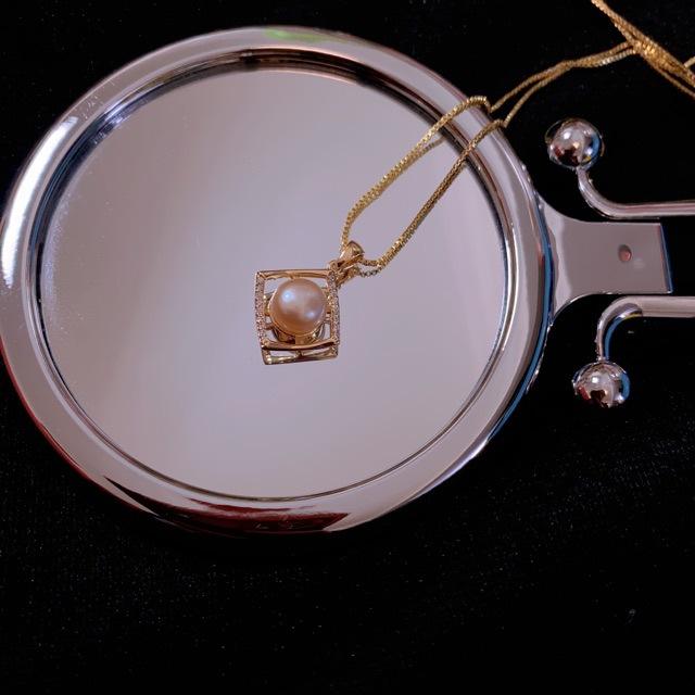 Collier polyvalent en or 14 carats avec perle d'eau douce naturelle et pendentif carré, simple et élégant pour le quotidien