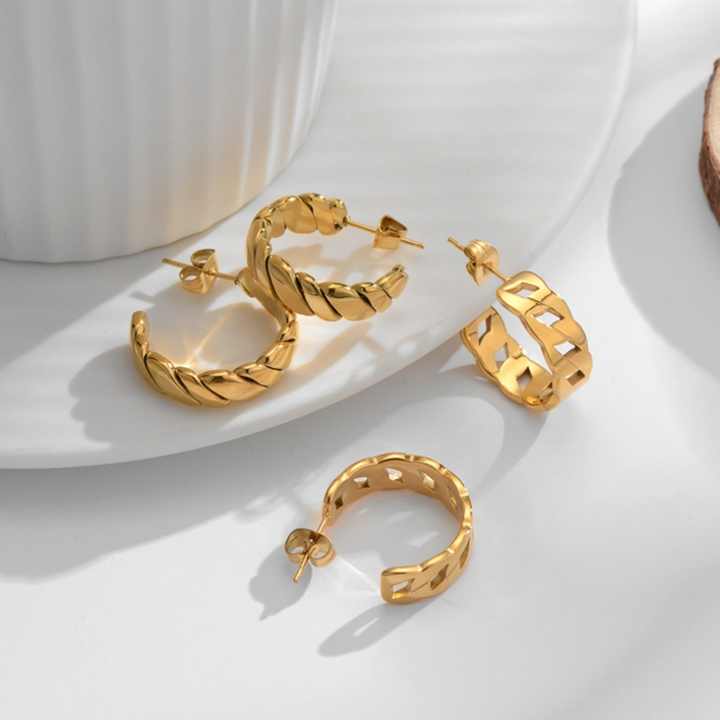 Boucles d'oreilles polyvalentes en chaîne creuse plaquée or 18 carats pour femme, personnalisées, en acier inoxydable tressé avec perles, pour anniversaire