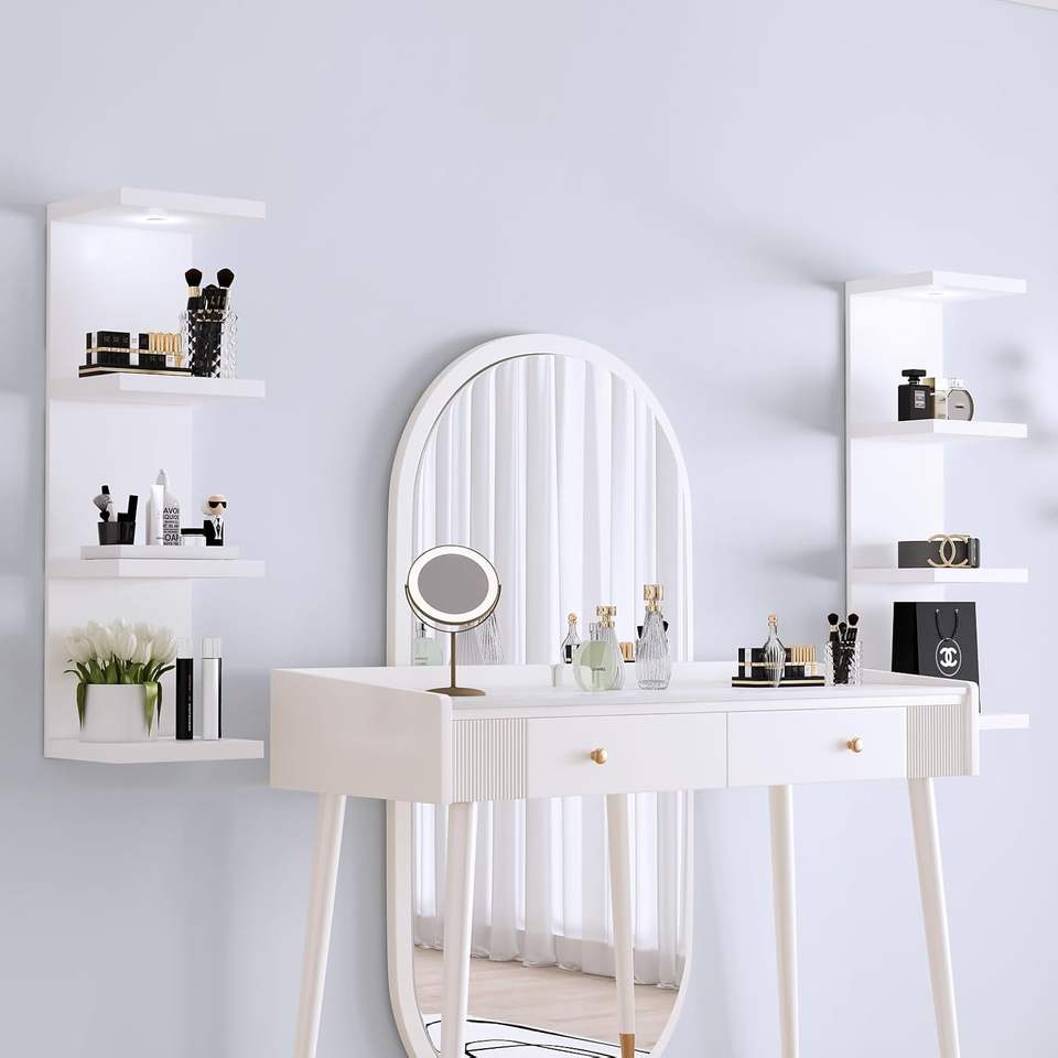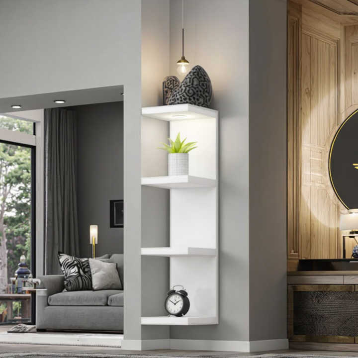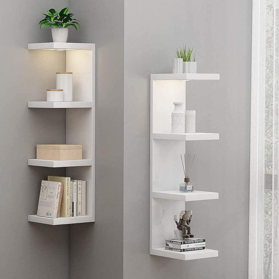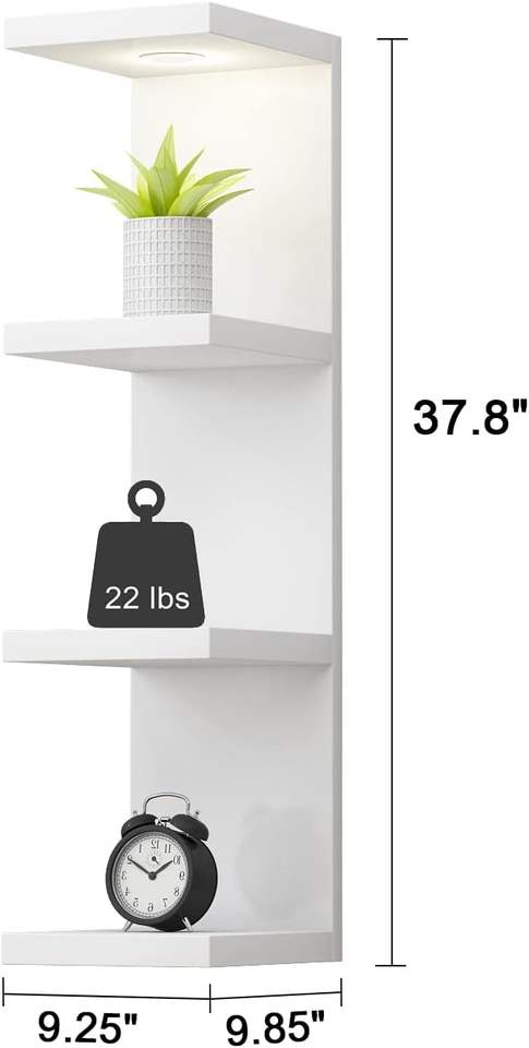 Étagère murale moderne en bois à 4 niveaux polyvalente, étagères flottantes blanches avec éclairage LED