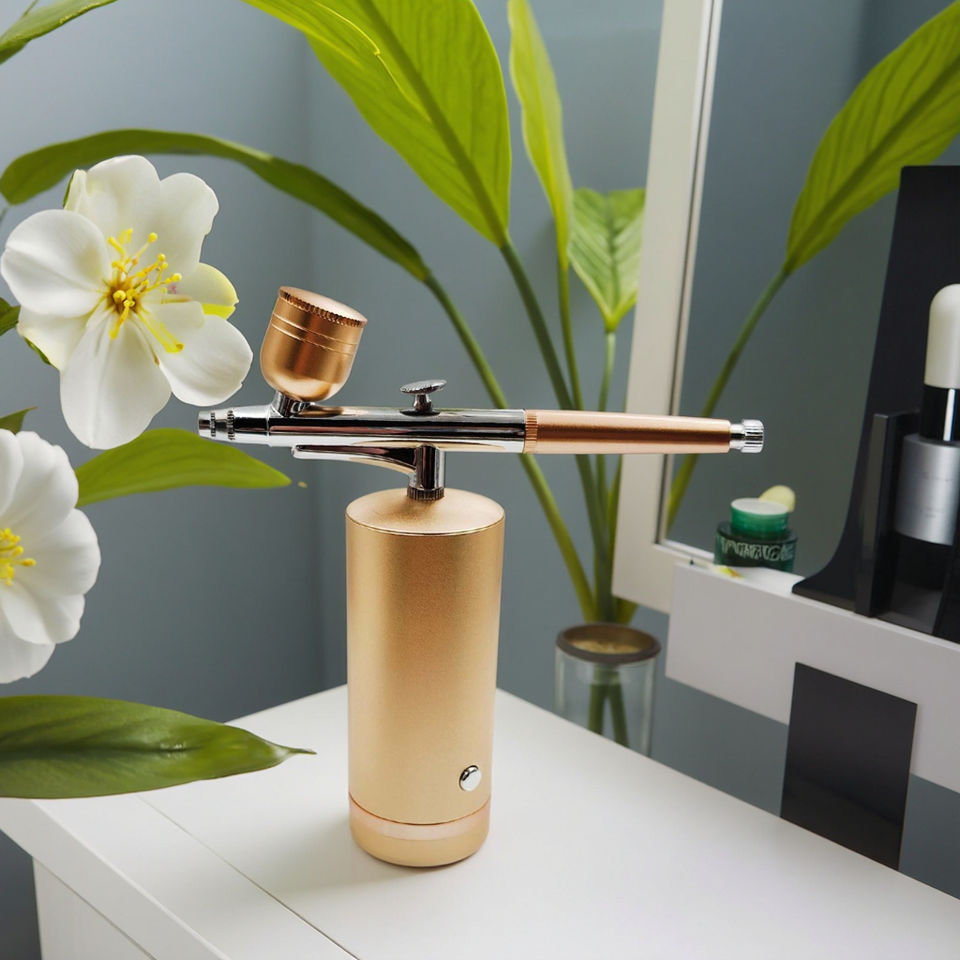 Kit d'aérographe polyvalent en cuivre avec compresseur d'air pour les maquilleurs, les décorateurs de gâteaux, les artistes de nail art, les peintres de modèles et les amateurs de loisirs créatifs