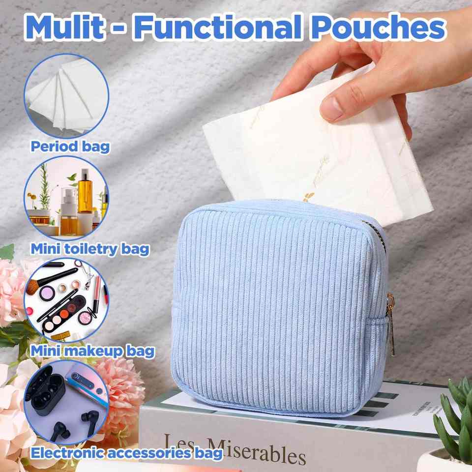 Pochette polyvalente en velours côtelé, solution élégante pour organiser les articles de hygiène féminine, les cosmétiques et les essentiels quotidiens