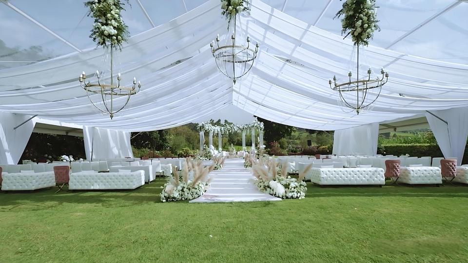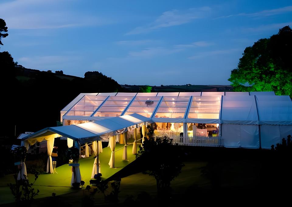 Design polyvalent avec 50 panneaux transparents pour 100 personnes et options de couleur pour des expériences de mariage sur mesure Tente de mariage personnalisable