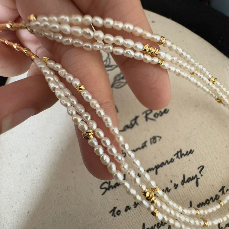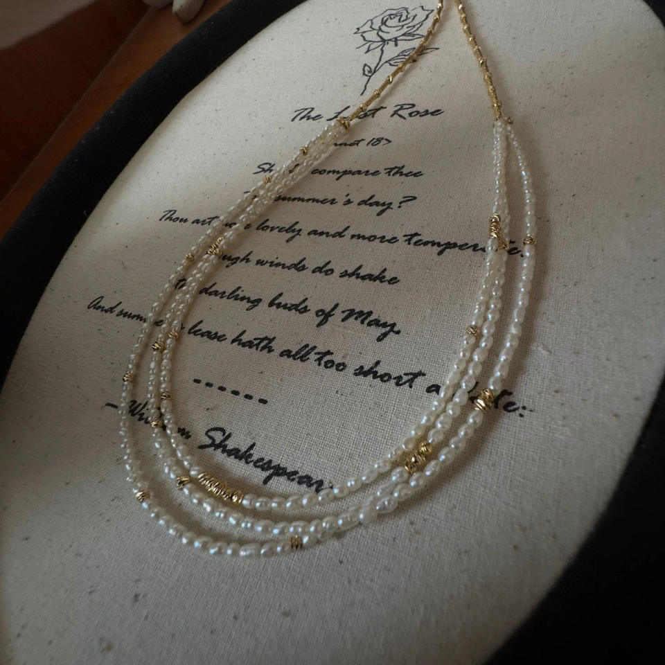 Collier en perles d'eau douce Keshi Kexu de style rétro français polyvalent, design multicouche de niche