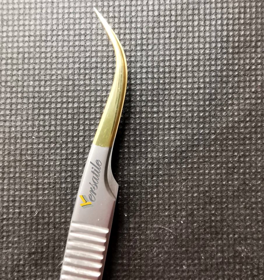 Pince à cils polyvalente en acier inoxydable plaqué or 3D avec logo personnalisé, courbée et robuste pour volume russe