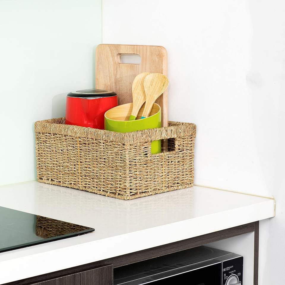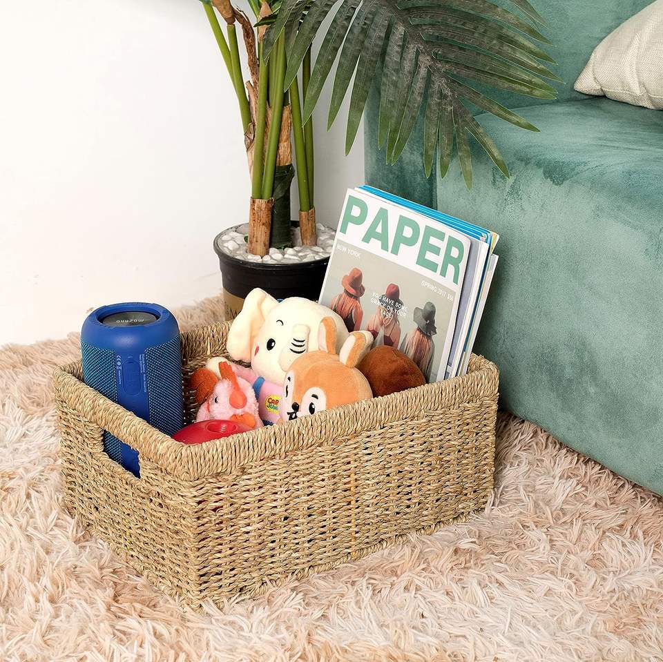 Paniers rectangulaires moyens polyvalents en jonc de mer: paniers d'intérieur idéaux pour l'organisation, parfaits pour ranger les télécommandes