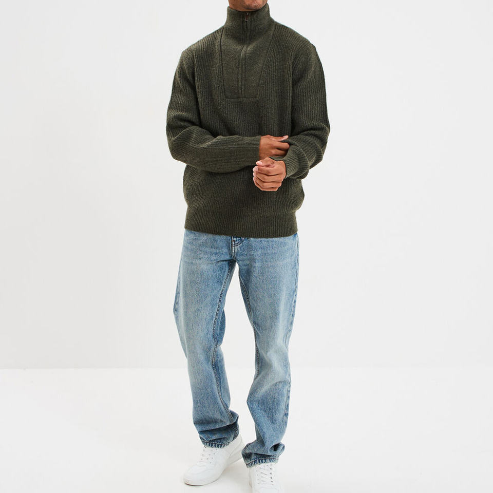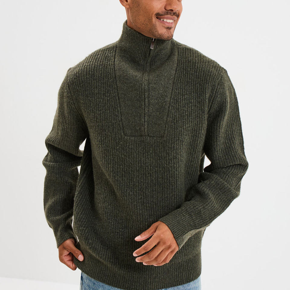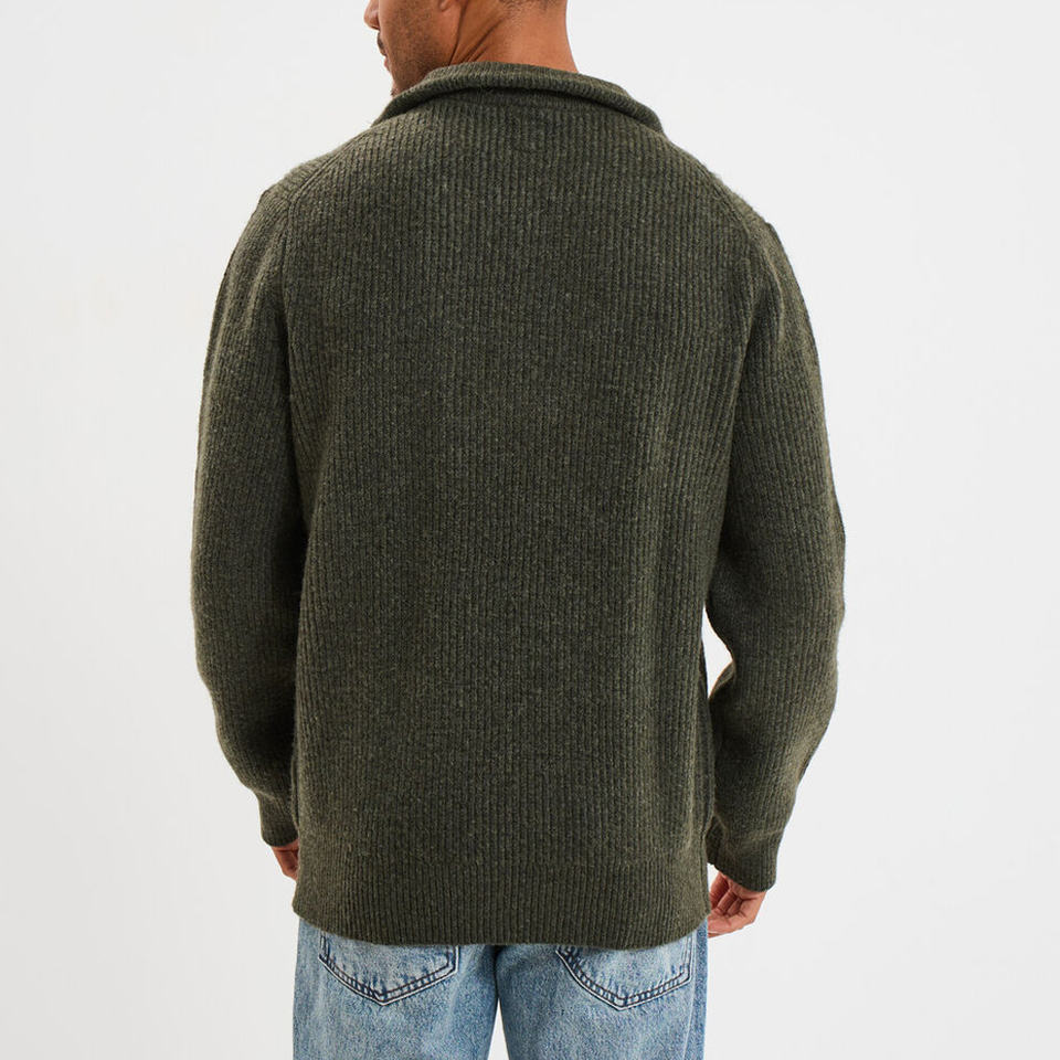 Product Name:Men's khaki green ribbed trucker collar sweater