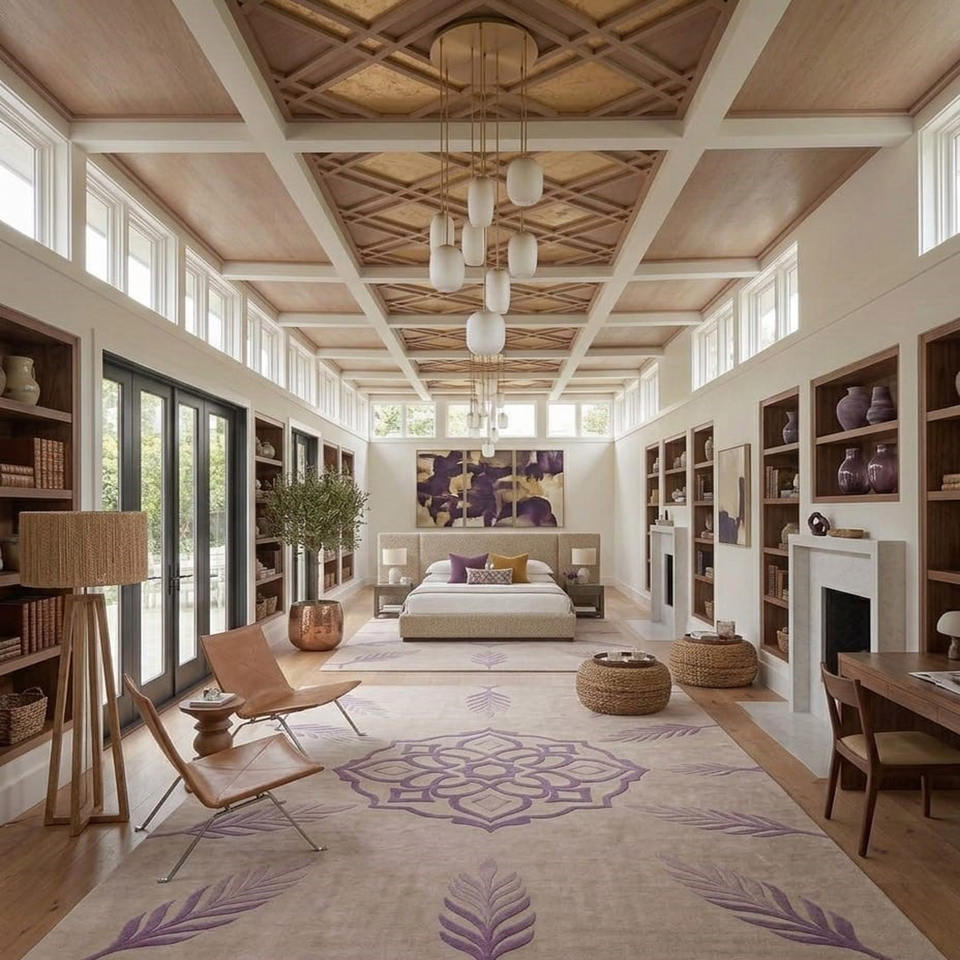 Tapis polyvalent en laine de Nouvelle-Zélande, design violet tufté et sculpté, idéal pour les projets résidentiels, hôteliers et de bureaux