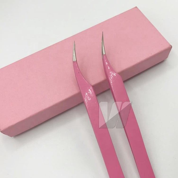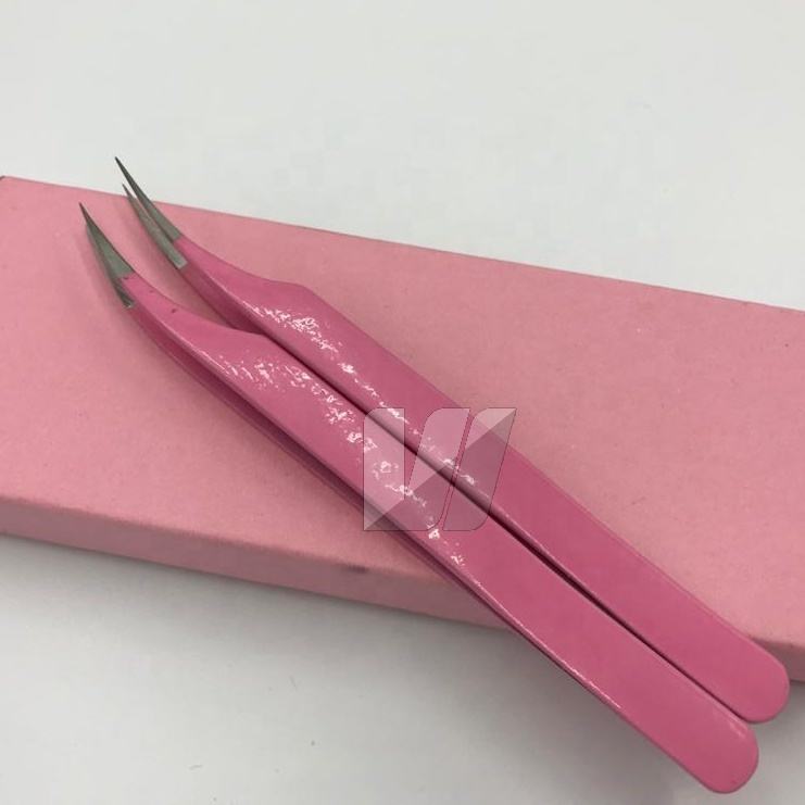 Pince à épiler incurvée polyvalente en acier durable à revêtement rose avec logo personnalisé Pince à épiler d'extension de cils à pointe pointue